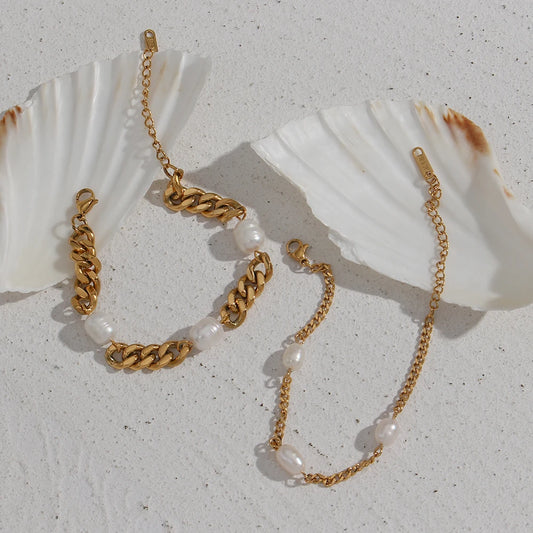 Women's Bracelet Stainless Steel Cuban Link Chains Bracelets with three pearl For Women Chain On Hand Accessories 3/6MM Jewelry
